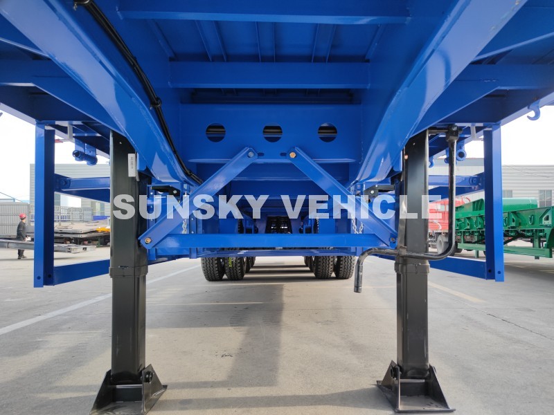 Essieux : Équipé de 3 essieux, 16 tonnes, de la marque FUWA — une marque mondialement reconnue dans le domaine du transport lourd.Train d'atterrissage : Comprend un train d'atterrissage de marque JOST de 28 tonnes avec une commande manuelle à deux vitesses pour un stationnement stable et un détachement facile.