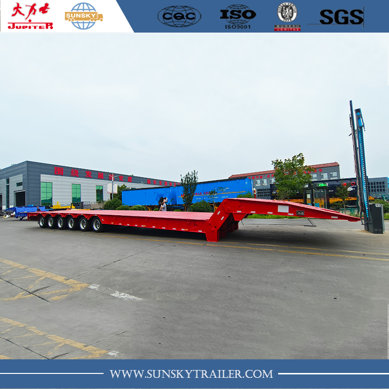 Fatigué des procédures de chargement arrière lentes et dangereuses ? Notre semi-remorque surbaissée à 6 essieux est équipée d'un système d'attelage col de cygne hydraulique intégré, avec son propre moteur et sa pompe dédiés. Ce mécanisme de pointe permet à un seul opérateur de détacher rapidement le col de cygne, transformant ainsi le plateau de la remorque en une rampe de plain-pied. Fini les rampes de chargement externes encombrantes ! Votre flux de travail s'accélère considérablement et, surtout, les risques professionnels liés à la manutention d'engins lourds sur des surfaces inclinées sont minimisés. Chargez votre matériel par l'avant, arrimez-le et prenez la route en quelques minutes, et non en quelques heures.