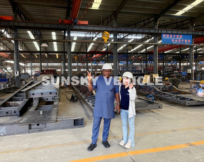 The client expressed great satisfaction with Sunsky Vehicle’s ability to offer bespoke solutions, rapid problem-solving, and efficient production adjustments. Following the productive visit, the client immediately confirmed the new order for the low-bed semi-trailer and a tractor truck.
